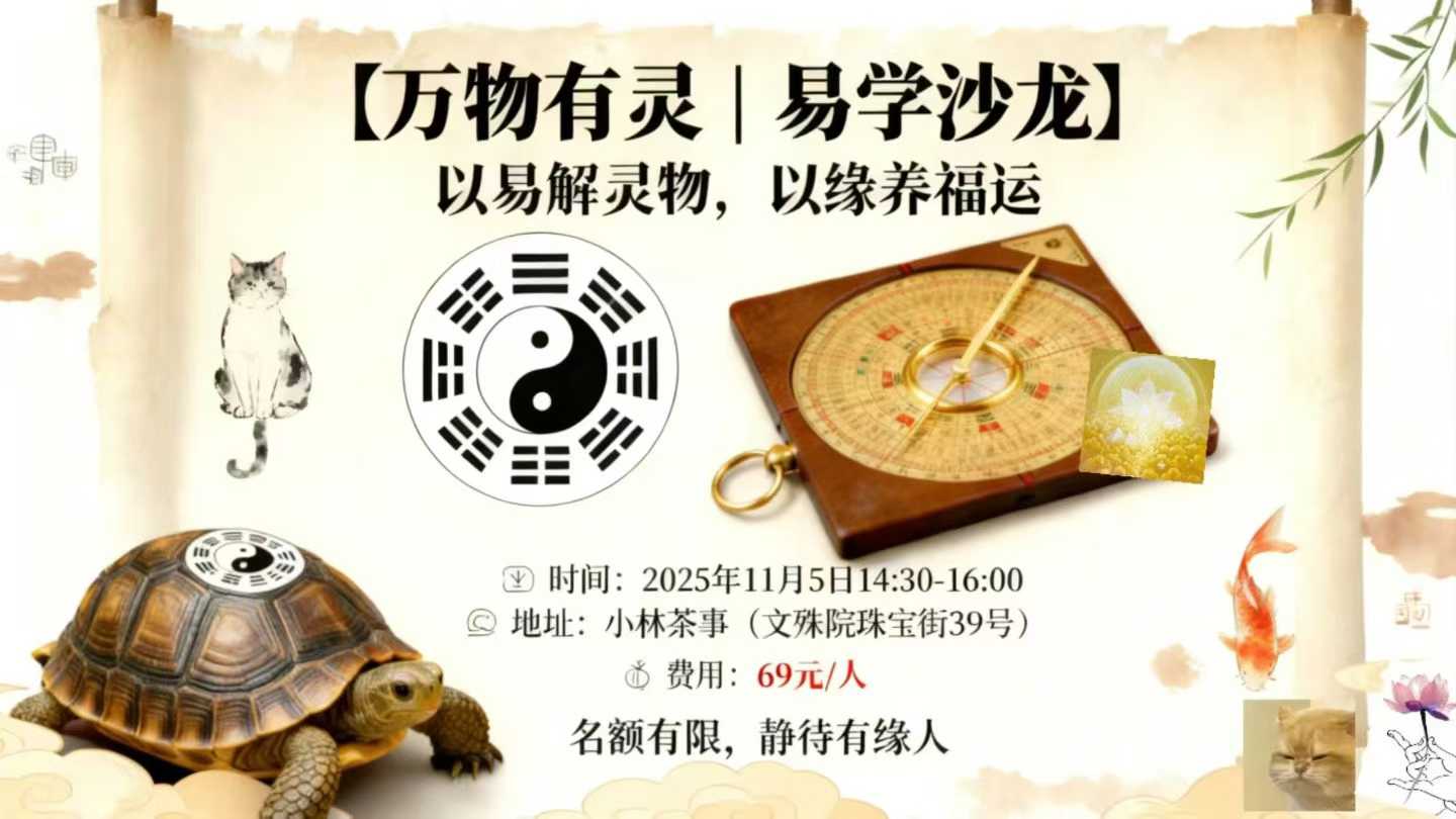 学习提升,易学沙龙。以易解灵物,以缘养福运。 2025年11月3日 18:50:27冰痕 冰痕 管理员 关注 3文章 0粉丝 易学文化评论71阅读模式 ⏰ 时间:2025年11月5日 14:30-16:00 📍 地址:小林茶事(文殊院珠宝街39号) 💰 费用:69元/人 名额有限,静待有缘人 本站原创文章内容,用于个人学习交流,可能对您有所帮助,仅供参考! 点赞 https://www.cxhxp.com/2025/11/159.html 复制链接 复制链接 黄塬城微信号 微信扫一扫 hs262678 微信号已复制 黄塬城的微信公众号 微信扫一扫 gh_011f8571dd8b 公众号已复制